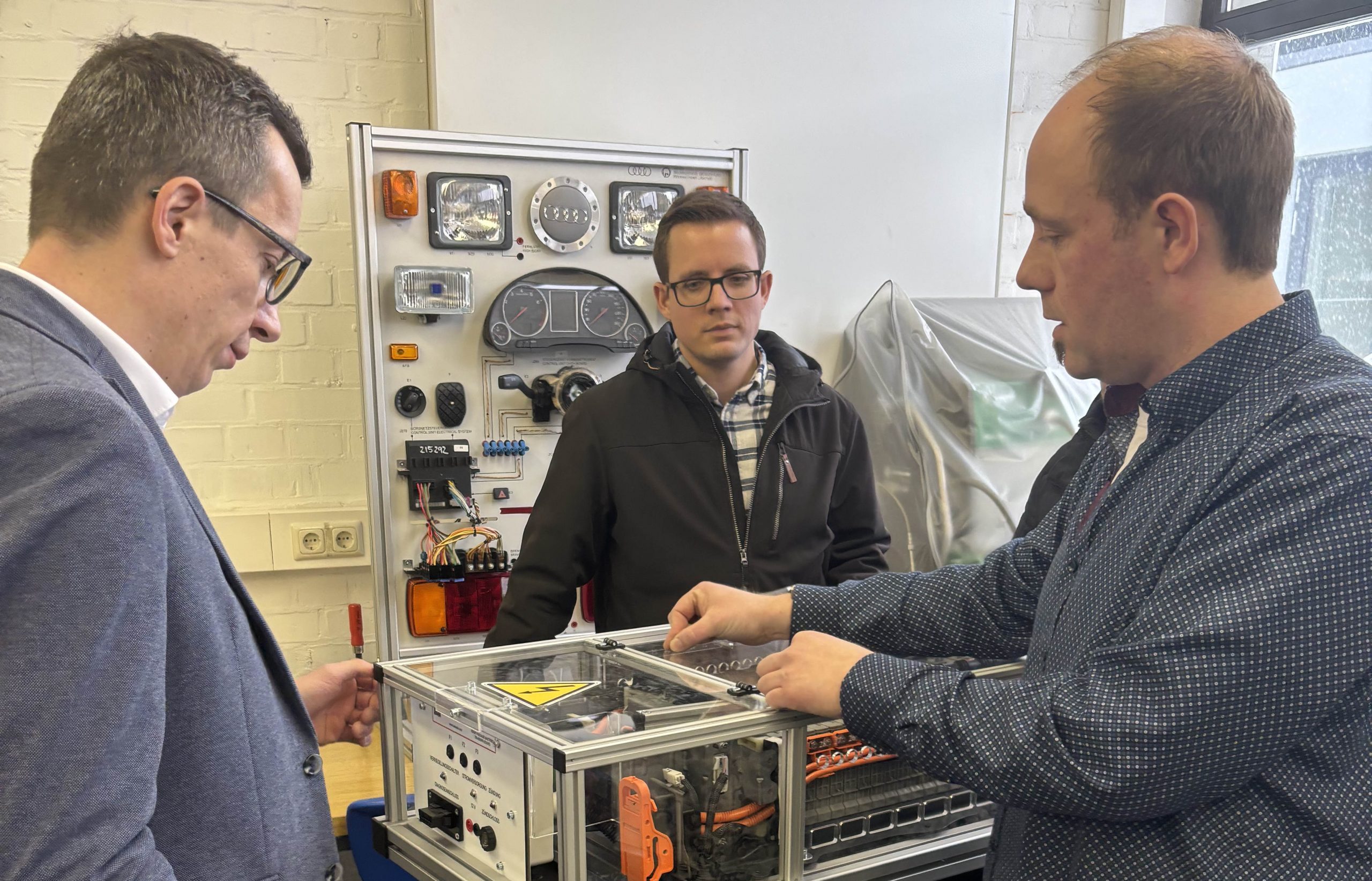 Dort wird schnell deutlich, dass sich einiges getan hat. Denn neben 40.000 Euro in eine neue Akustikdecke, Fenster sowie Elektrik hat der Schulträger rund 132.000 Euro aus eigenen Mitteln in neues Mobiliar, mobile Experimentierwagen, Labortische, Grundlagensets zur Kfz-Elektrik und Trainingssysteme für aktuelle Technologien investiert.