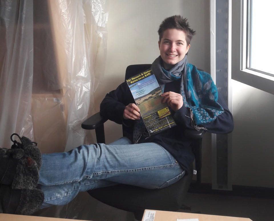 „Wir haben heute diese Außenstelle von Hessen Mobil besetzt, weil wir nicht einfach den zerstörerischen Plänen zuschauen wollen. Wir können nicht weiter den Glauben verbreiten, dass mit der richtigen kapitalistischen Taktik alles gut wird. Neue Straßen erzeugen mehr Verkehr und wenn Projekte wie die B49 in diesen Zeiten noch umgesetzt werden sollen, dann ist der einzige Leitfaden, der gilt: Macht kaputt, was euch kaputt macht!”, so Tara Novac (20).