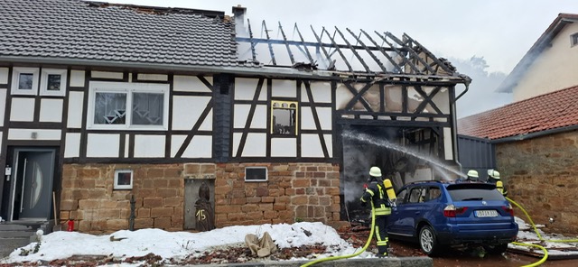 Ein Bewohner des Hauses nahm zunächst einen lauten Knall wahr und wurde dadurch auf das Feuer aufmerksam. Die umgehend alarmierte Feuerwehr rückte mit einem Großaufgebot an Einsatzkräften an und konnte den Brand zeitnah unter Kontrolle bringen. Ein Übergreifen der Flammen auf das Wohnhaus sowie auf benachbarte Gebäude wurde dadurch verhindert.