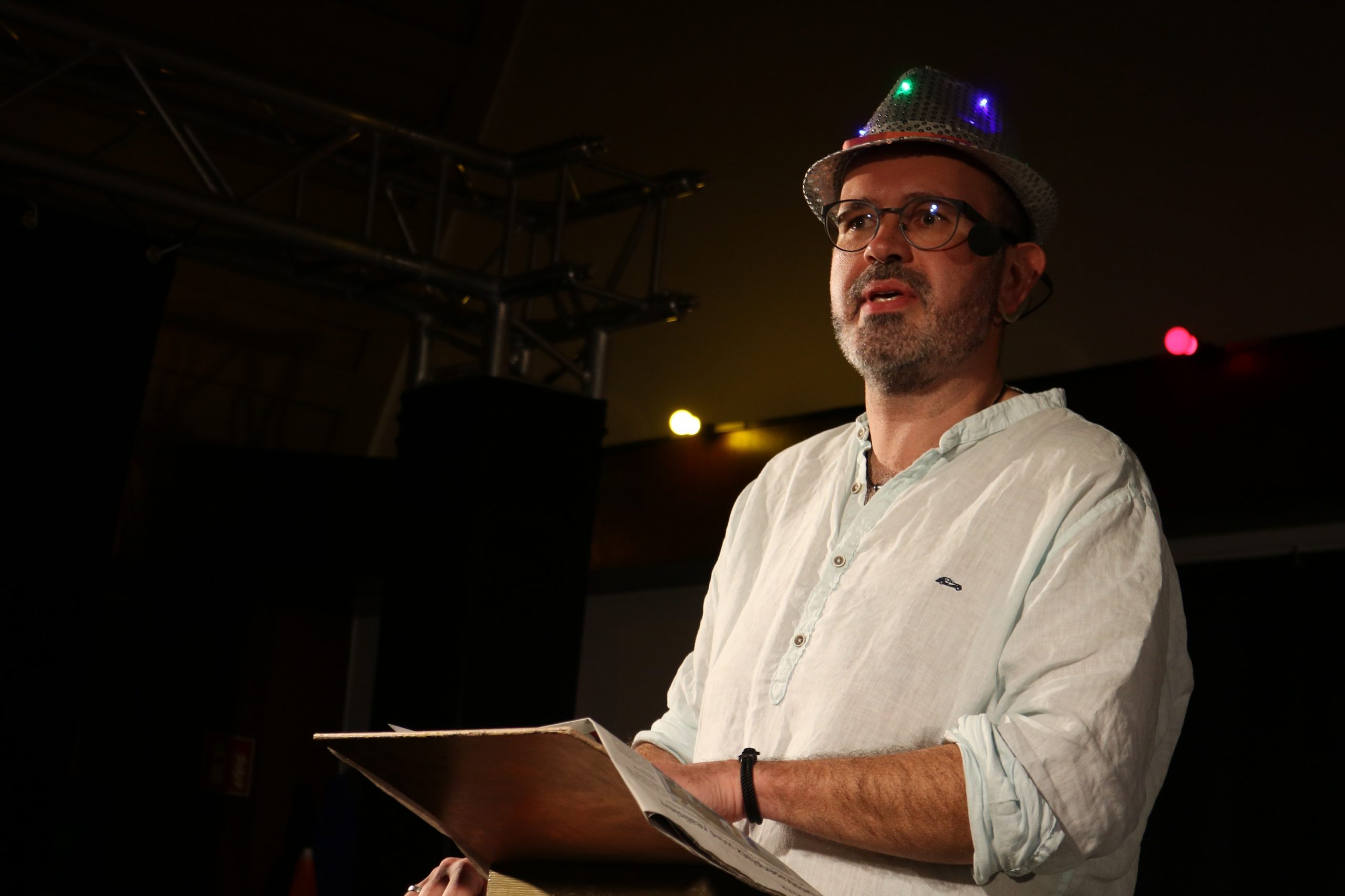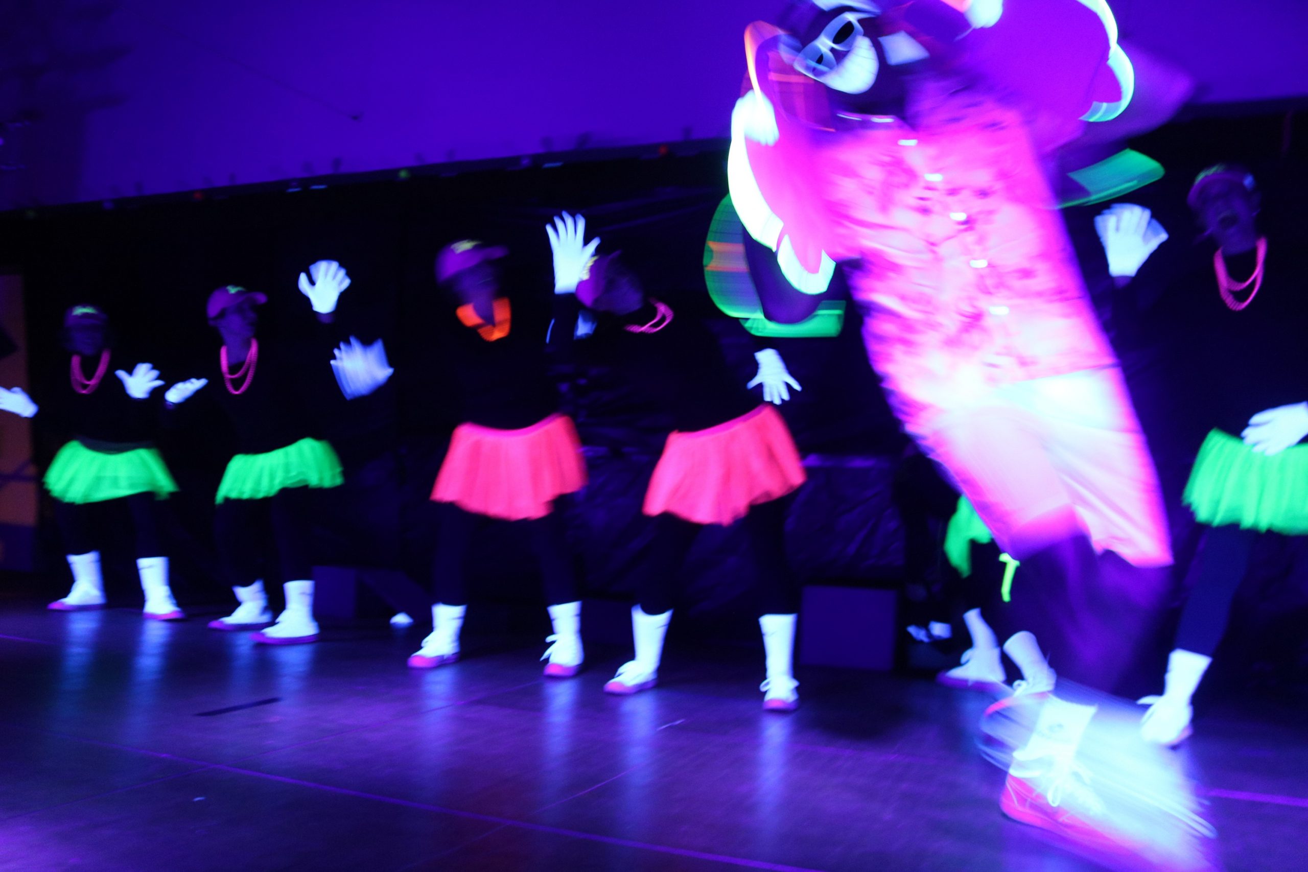Nach der ersten Pause wurde es dunkel im Saal: die Castle Hill Girls, bekannt für ihren ausgefeilten und fantasievollen Schwarzlichttanz, begannen als Nonnen zu den schönsten Sounds aus „Sister Act“ und bestachen dann als „Barbies“ mit einem Ken, der in dem schwarzen Licht viele Zähne zeigte. Eine witzige, gut gelaunte Darbietung, die mit Licht und Dunkelheit perfekt spielte und ihresgleichen sucht. Über das Dorfgeschehen ließ sich sodann die Dorfchronistin Holly Aperoli alias Traudi Schlitt aus. Sie hatte viele Geschichten gesammelt und fand für alle – von alkoholischen Missgeschicken über die wahre Ursache für den großen Stromausfall bis hin zur Maulwurfplage – genau den Ton, der Spaß machte und Neugierde weckte. Mit Tanz endete auch dieser Block: Die Nachwuchstruppe der Altenburger Männer, die Bierbauch-Ballerinos, ließen die Disney-Helden der Kindheit auferstehen und tanzten in bester Stimmung und sehr gekonnt die Liebesgeschichte von Minnie Mouse und Mickey Mouse – natürlich in lustigen Kostümen und mit ziemlich sportlichen Einlagen. Damit zeigten sie deutlich, dass sie dem Newcomer-Status vom letzten Jahr längst entwachsen und bereit sind, in den Olymp des letzten Blocks aufzurücken.