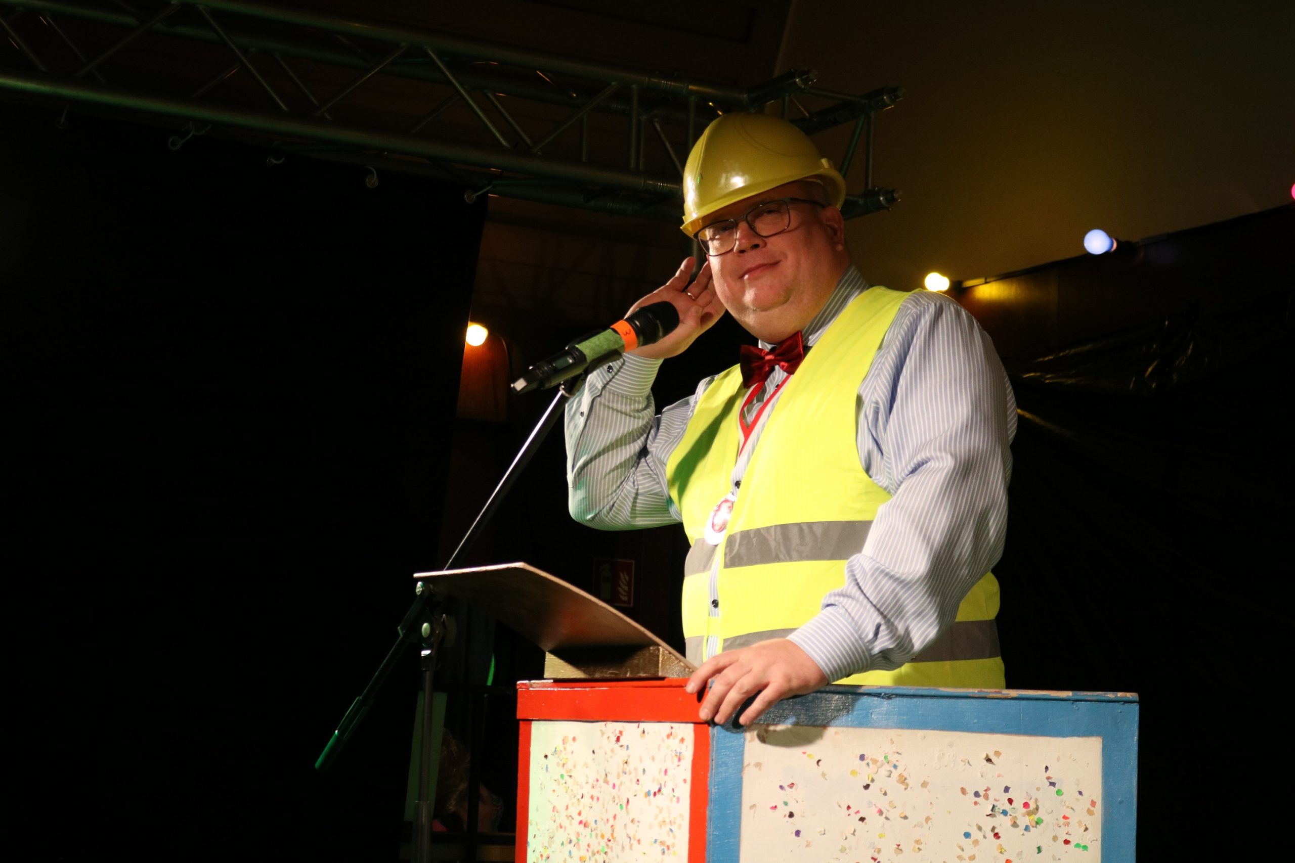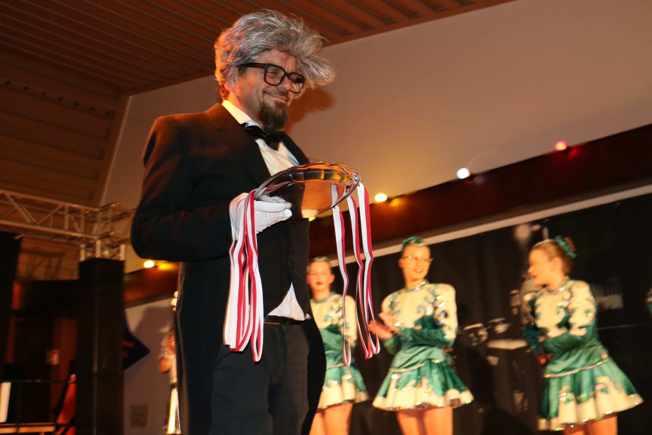 Für die erste Rakete im Saal sorgten die Tänzerinnen der Konfettis des ACC. Ihr Auftritt ist stets ein Garant für perfekten Gardetanz, dargeboten mit einer großartigen Präzision, ganz viel Freude und strahlendem Lächeln. Der zweite Programmpunkt war für einen alten Bekannten auf der Altenburger Faschingsbühne reserviert, der sich eine Zeitlang rar gemacht hatte. David Tauscher, f.k.a. Heinz Becker von Alsfeld, berichtete von vielen witzigen Begebenheiten, die er in aller Ruhe von Pointe zu Pointe trug, womit er im Publikum für große Lacher sorgte. Nach den Grüßen des ACC durch deren Präsidenten Thorsten Funkt war mit dem Auftritt von „Heinz & Friends“ für ein absolutes Highlight gesorgt, das die Altenburger lieben: Unter der Leitung von Stephanie Ebert tun sich in dieser Formation der ehemalige Ortsvorsteher Heinz Heilbronn, Bürgermeister Stephan Paule, VR Verbundbank-Chef Helmut Euler und als Gäste Kai und Julia Waidner zusammen, um ordentlich Klamauk und Musik zu machen. In diesem Jahr – dem 50. Geburtstag der Muppet Show – ließen sie Miss Piggy, Kermit, das Tier, Gonzo und den dänischen Koch auftreten, die sich Bonnie Tyler als Gaststar eingeladen hatten. Das grandiose Novum in diesem Jahr war – neben dem unglaublichen Chaos, das die Truppe auf der Bühne inszenierte – die Live-Darbietung von „Total Eclypse of the Heart“ und „The final Countdown“. Den ersten Block rundete eine choreografisch ausgefeilte und sehr kraftvolle Tanzdarbietung der Zeller Garde ab. Alles passte bei diesem großartigen Auftritt, der für viel Begeisterung sorgte.