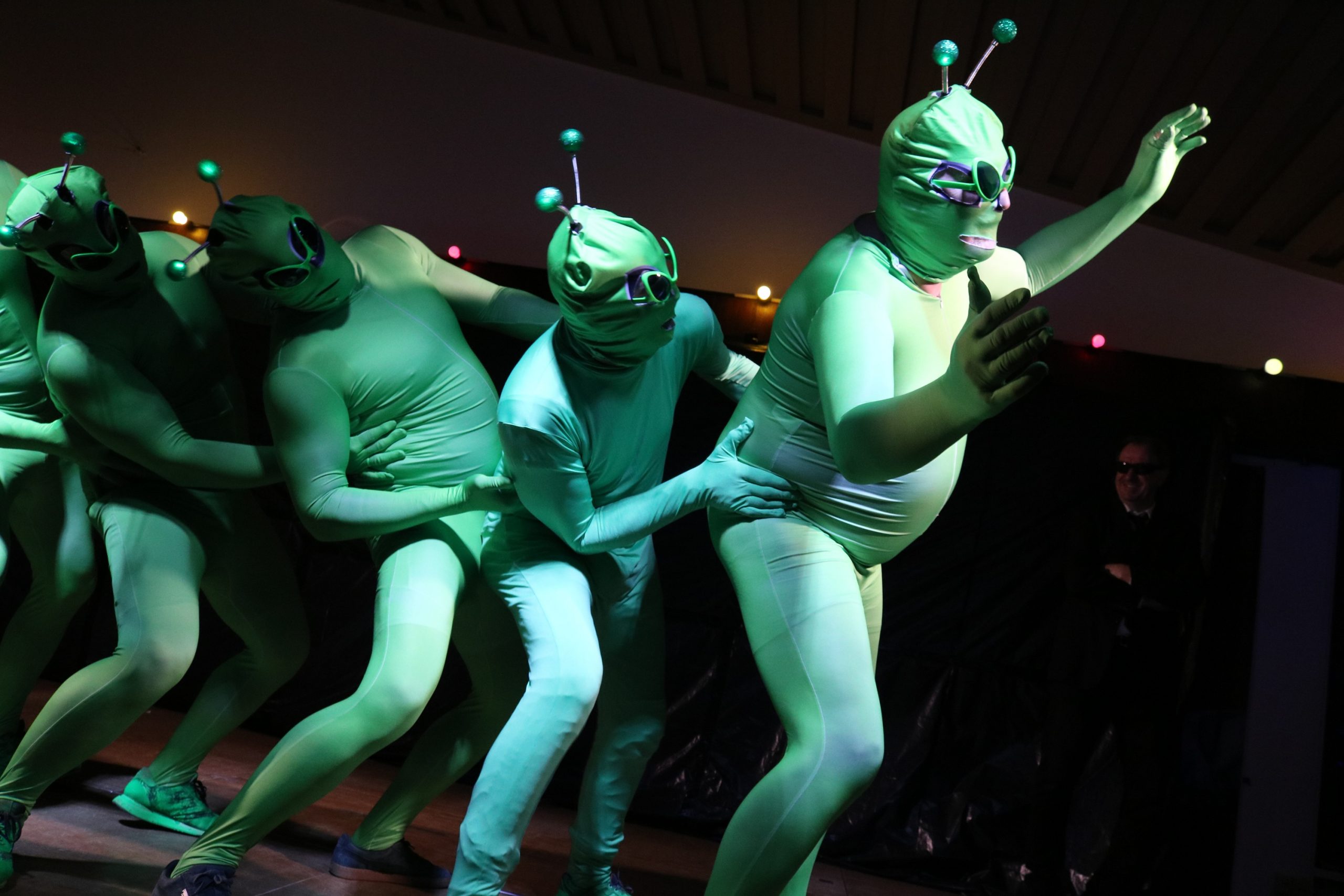 Dort begrüßten die „Rhythm Rockets“ die Gäste zum großen Finale der Sitzung. Die Tänzerinnen des TVA überzeugten mit einem getanzten Arbeitstag – so perfekt choreografiert, so wunderbar ausgestattet, und so voller Power, dass es die Gäste in Altenburg förmlich von den Stühlen riss – sie waren begeistert von Kraft, Anmut, Witz und Charme dieser außergewöhnlichen Darbietung. Nun nahm auch der Rathauschef sich Zeit für seine Altenburger Büttenrede. Er beleuchtete die Situation auf dem Altenburger Taximarkt genauso wie die Aktivitäten seines Vor-Vor-Gängers, der inzwischen als Reifen-Onkel die Gelegenheit habe, Profil zu zeigen. Mit ernstem Blick warb er für die Vorzüge der Demokratie, bevor auch er über einige Umwege auf den Altenburger Stromausfall zu sprechen kam. Im Stil von „Weihnachten in Stenkelfeld“ entwarf er eine wortwitzige Geschichte mit vielen Altenburger Akteuren, von denen jede und jeder mit kleinen Dingen den großen Stromausfall begünstigt hat. Das Publikum lachte sich schlapp, der Redner auch, und kaum war eine Dreiviertelstunde mit vielen Pointen, viel Zwischenmusik und viel Applaus um, da war auch schon das Männerballett dran. Die Tänzer zeigten sich als grüne Männchen, gejagt von Ghostbusters und auch ein bisschen vom Zahn der Zeit. Sie gaben ihren Abschied bekannt und so galt der frenetische Applaus nicht nur der Darbietung des Abends, sondern auch ein wenig dem „Lebenswerk“ der Mutter aller hiesigen Männerballetts unter der Leitung von Sabrina Kalbfleisch und Tina Kröning.