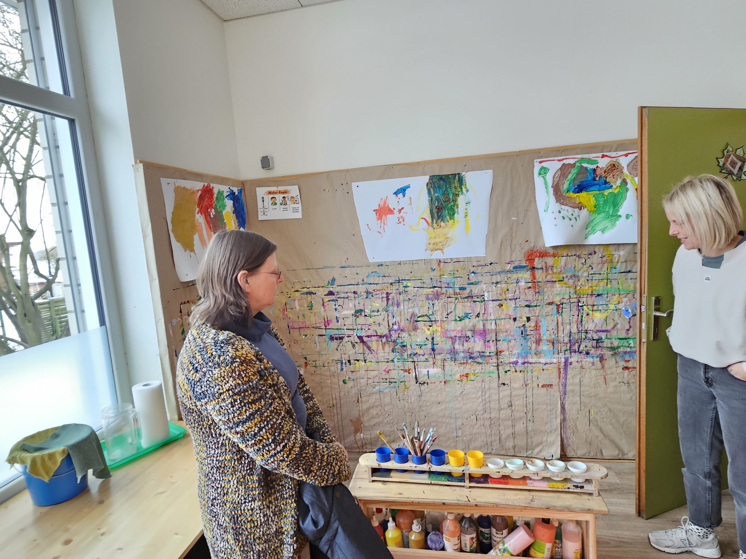 Beeindruckt war die Besuchergruppe auch von dem kulturellen Projekt, zu dem sich die Kita beworben hatte. So werden als Kulturkita den Kindern – auch mit Unterstützung von externen Fachkräften – zum Beispiel kreative Workshops und ein Atelier für kleine Künstler angeboten. Sicherlich eine schöne Abwechslung und Bereicherung im Kitaalltag.