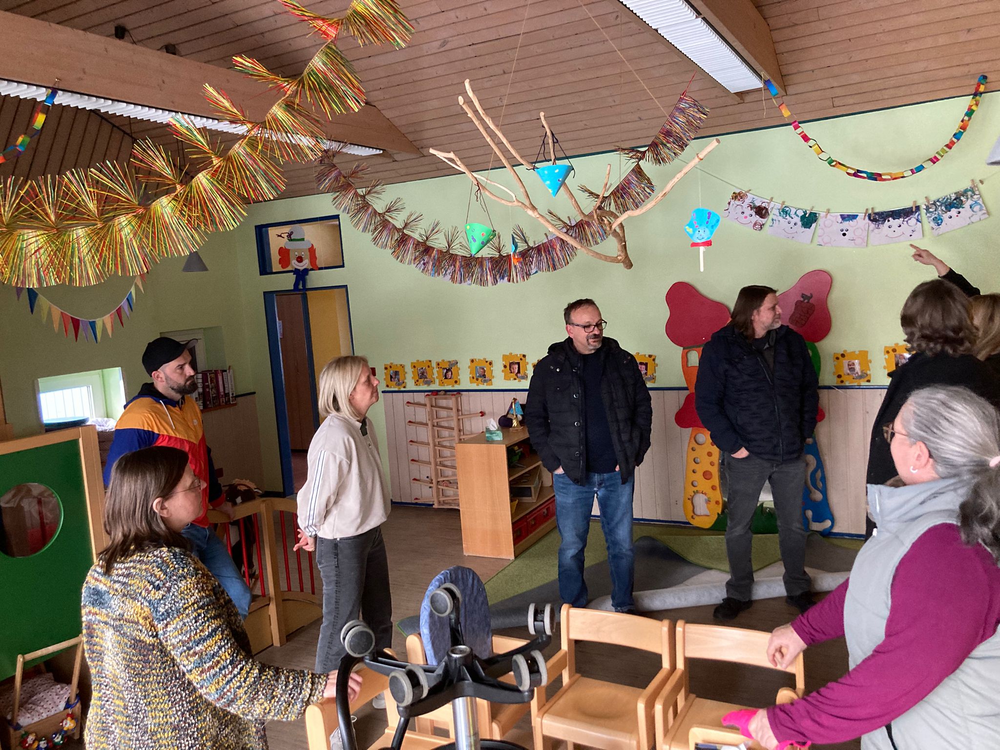 Da auch in politischen Kreisen viel über die Kita gesprochen wird, wollten sich die Kandidaten der SPD/UWL mit einem Ortstermin einen eigenen Überblick verschaffen. Begleitet vom Leitungsteam der Einrichtung konnten dabei die Räume in Augenschein genommen werden und Fragen zum pädagogischen Konzept erörtert werden.