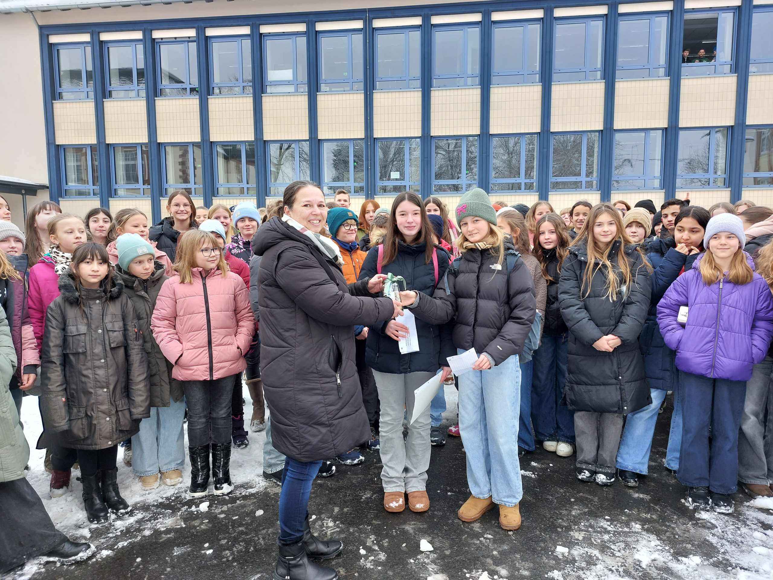 In einer kurzen Ansprache bedankte sich Frau Scheer herzlich für die Unterstützung: „Wir sind überwältigt von der Großzügigkeit und dem Engagement der Schülerinnen und Schüler. Gerade in unserer aktuellen Lage ist jede Hilfe ein Lichtblick.“ Auch die Schulleitung nutzte die Gelegenheit, um die Leistung der Schülerinnen und Schüler zu würdigen. „Unsere Schülerinnen und Schüler haben nicht nur ihre Kreativität gezeigt, sondern auch bewiesen, wie wichtig ihnen soziales Engagement ist. Wir sind sehr stolz auf sie“, erklärte Silvia Diehl als Vertreterin des Schulleitungsteams.
