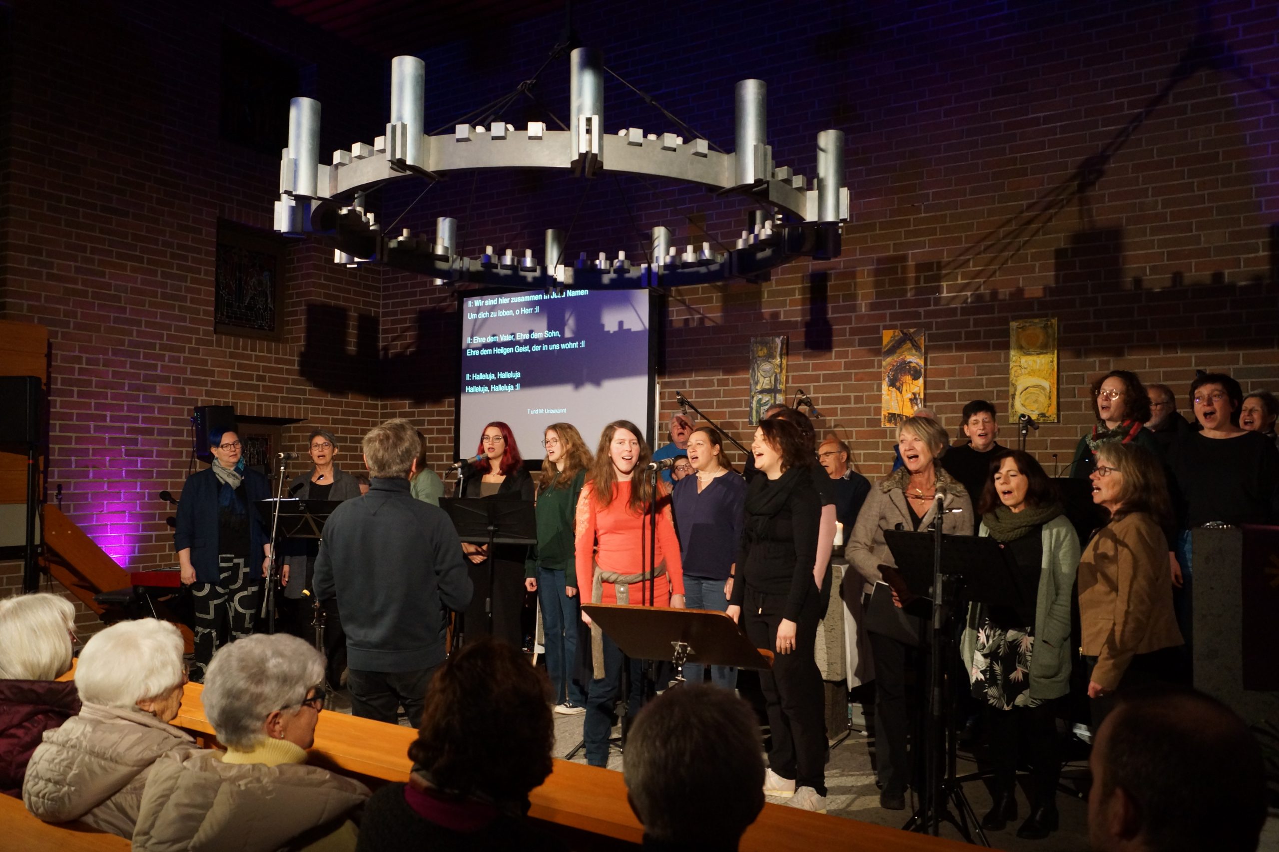 Sängerinnen, Sänger und Band gestalten musikalischen Gottesdienst mit zwei Pfarrern in der Evangelischen Kirche„Get together!“ – GospelHaus lädt zum Gospelgottesdienst in Leusel ein
