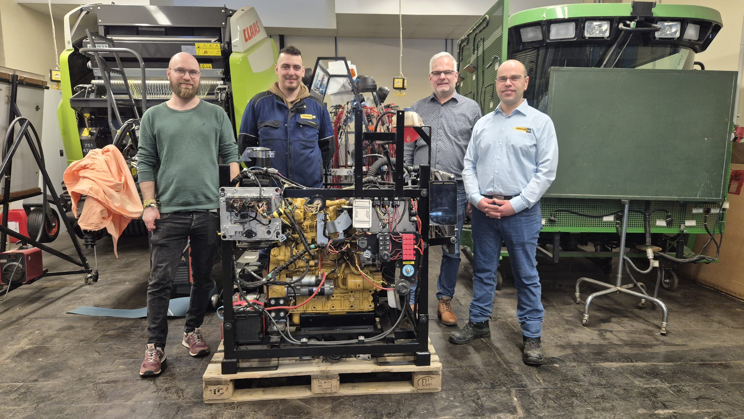 Freudig und voller Dank nahm Fachgruppensprecher Sebastian Hodes den Motor entgegen und erklärte sogleich Pläne, wie Fehlfunktionen an der Motorsteuerung simuliert werden können, um eine realitätsnahe Ausbildung zu unterstützen. Alexander Schmidt (Serviceleiter Zeppelin GmbH Alsfeld) unterstrich die Relevanz der Ausbildung von jungem qualifizierten Fachpersonal und lobte die Qualität der Max-Eyth-Schule. Durch Unterstützungen, wie diese Spende, sei es in der dualen Ausbildung sehr gut möglich, diese auf ein immer höheres Niveau zu heben. Sebastian Hodes und Schulleiter Friedhelm Walther bedankten sich bei Alexander Schmidt und Dennis Schneider (Ausbildungsbeauftragter Zeppelin Alsfeld) für die tolle Spende und freuen sich über die Unterstützung aus Alsfeld.