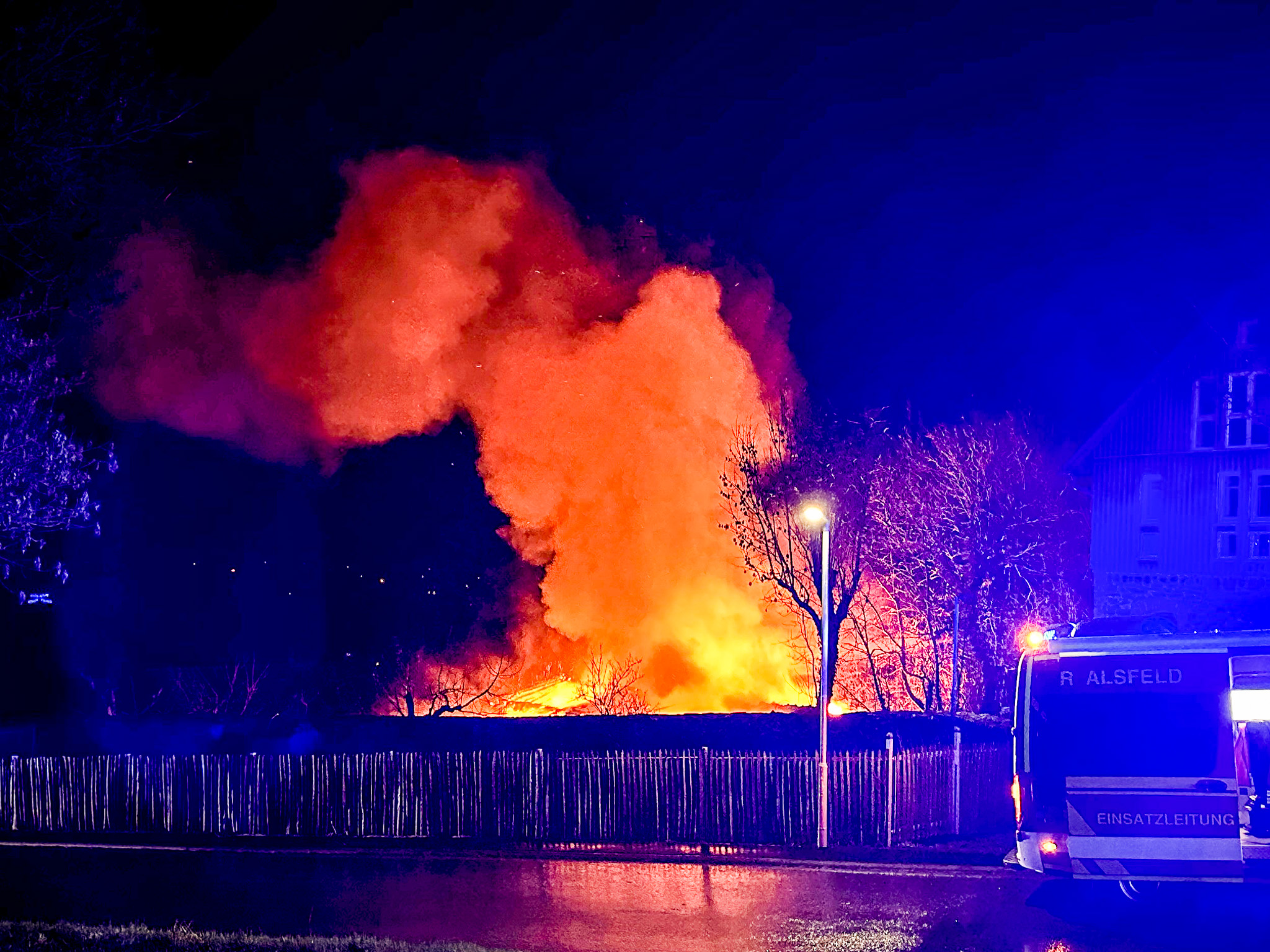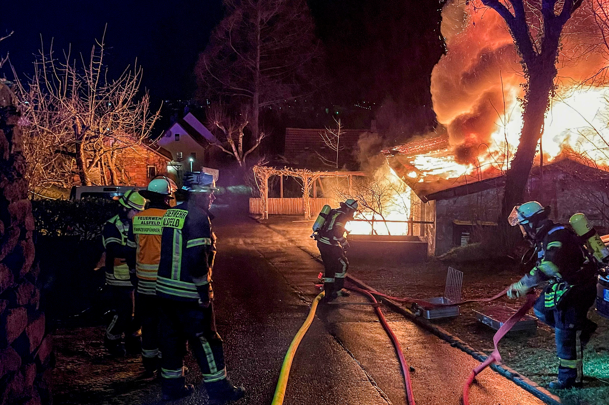 Der Alsfelder Löschzug, bestehend aus Einsatzleitwagen, Hilfeleistungslöschgruppenfahrzeug, Drehleiter, Tanklöschfahrzeug und Löschgruppenfahrzeug, konnte trotz des Einsatzes von 24 Einsatzkräften den Totalverlust des Gebäudes nicht verhindern, berichtet die Feuerwehr.