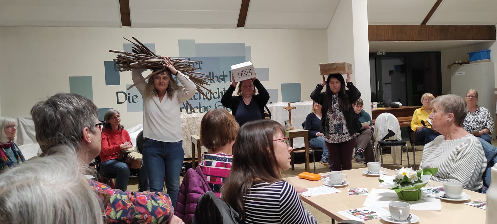 Der Leitvers aus dem Matthäusevangelium „Kommt her zu mir, alle, die ihr mühselig und beladen seid“ zog sich wie ein roter Faden durch den Abend. Er erzählte von Lasten, die viele Frauen tragen; in Nigeria genauso wie an anderen Orten der Welt. Und von der Hoffnung, dass niemand diese Lasten allein tragen muss.