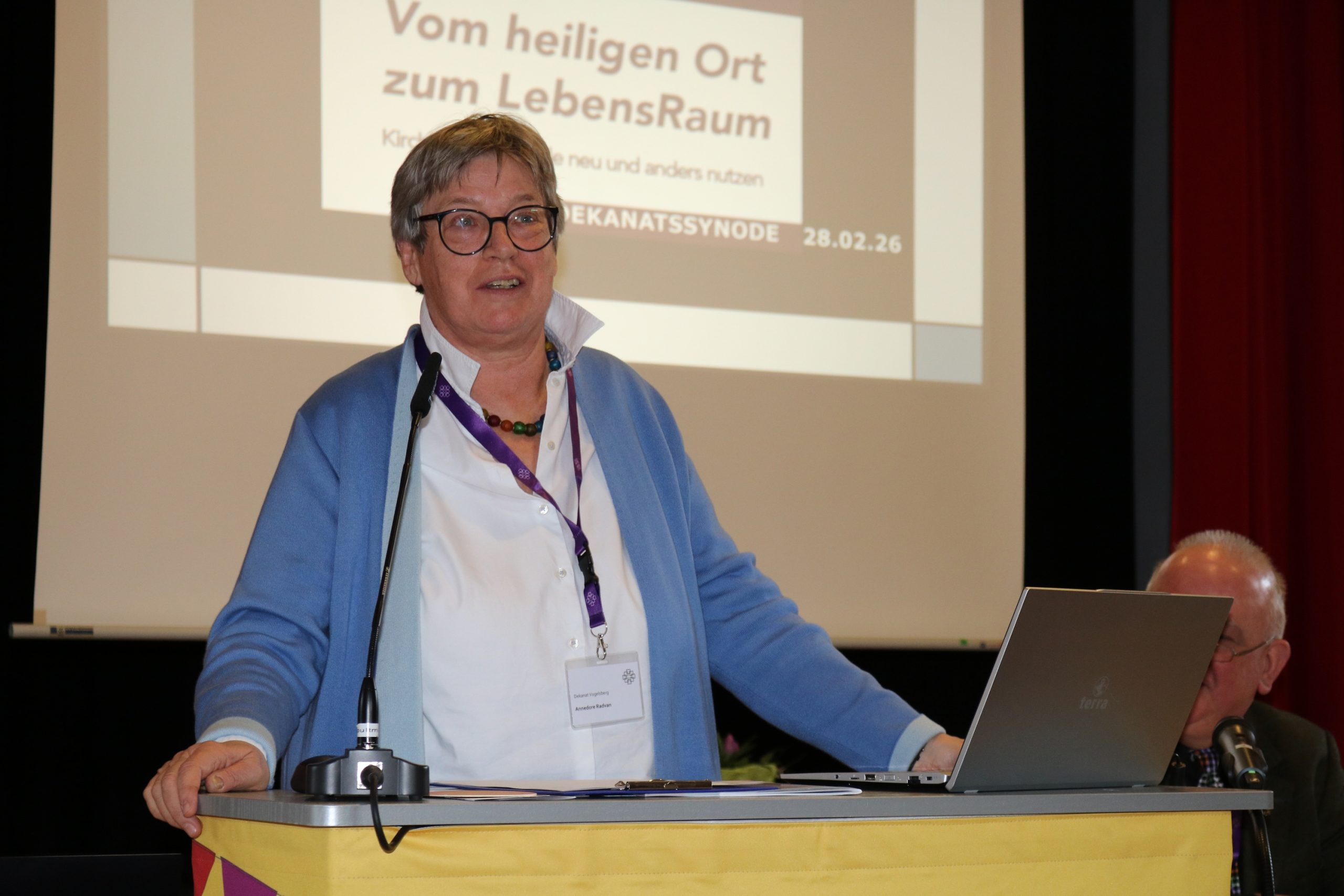 Nach den Eröffnungsregularien übernahm Dekanin Dr. Dorette Seibert die Moderation, da die Neuwahl zum Präses anstand. Außer dem kommissarischen Amtsinhaber Martin Reibeling gab es keine Kandidaten. Der 59-jährige Angenröder wurde mit großer Mehrheit gewählt. Seinen Platz im Dekanatssynodalvorstand wird Klaus Beutel aus Homberg (Ohm) einnehmen. Auch ihn wählte die Versammlung mit großer Mehrheit in dieses Gremium. Zur stellvertretenden Präses wurde im Anschluss Annedore Radvan gewählt. In den Auszählpausen stellten Diakon Holger Schäddel und die beiden Pfarrer Michael Koch und Daniel Meyer die Ausstellung „Vom Heiligen Ort zum Lebensraum“ vor. Sie beschäftigte sich den ganzen Februar über mit Perspektiven für kirchliche Gebäude, die zukünftig nicht mehr finanziert werden können.