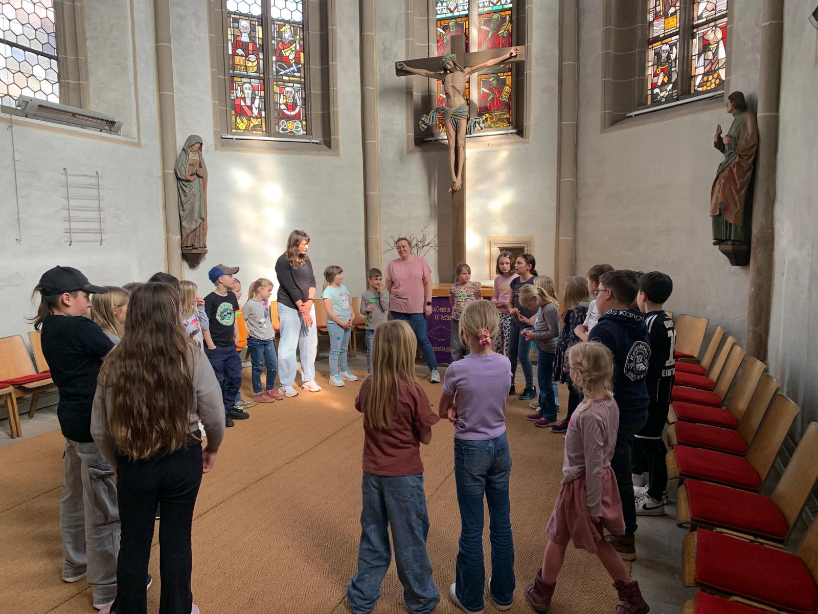 Doch die Geschichte endet nicht mit Traurigkeit. An der fünften Station hörten die Kinder von der Auferstehung Jesu – von neuem Leben und Hoffnung. Dazu gestalteten sie ihre eigenen Osterkerzen als Zeichen für das Licht, das stärker ist als die Dunkelheit.