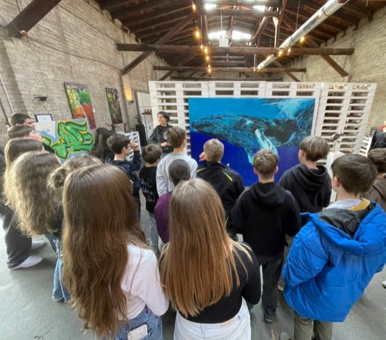 Als kleine inoffizielle Verlängerung der Ausstellung fand am Montag noch eine Führung mit zwei Schulklassen statt. Britta Jakobi nahm sich die Zeit, den interessierten jungen Menschen die Kunst zu zeigen und das eine oder andere zu erläutern.