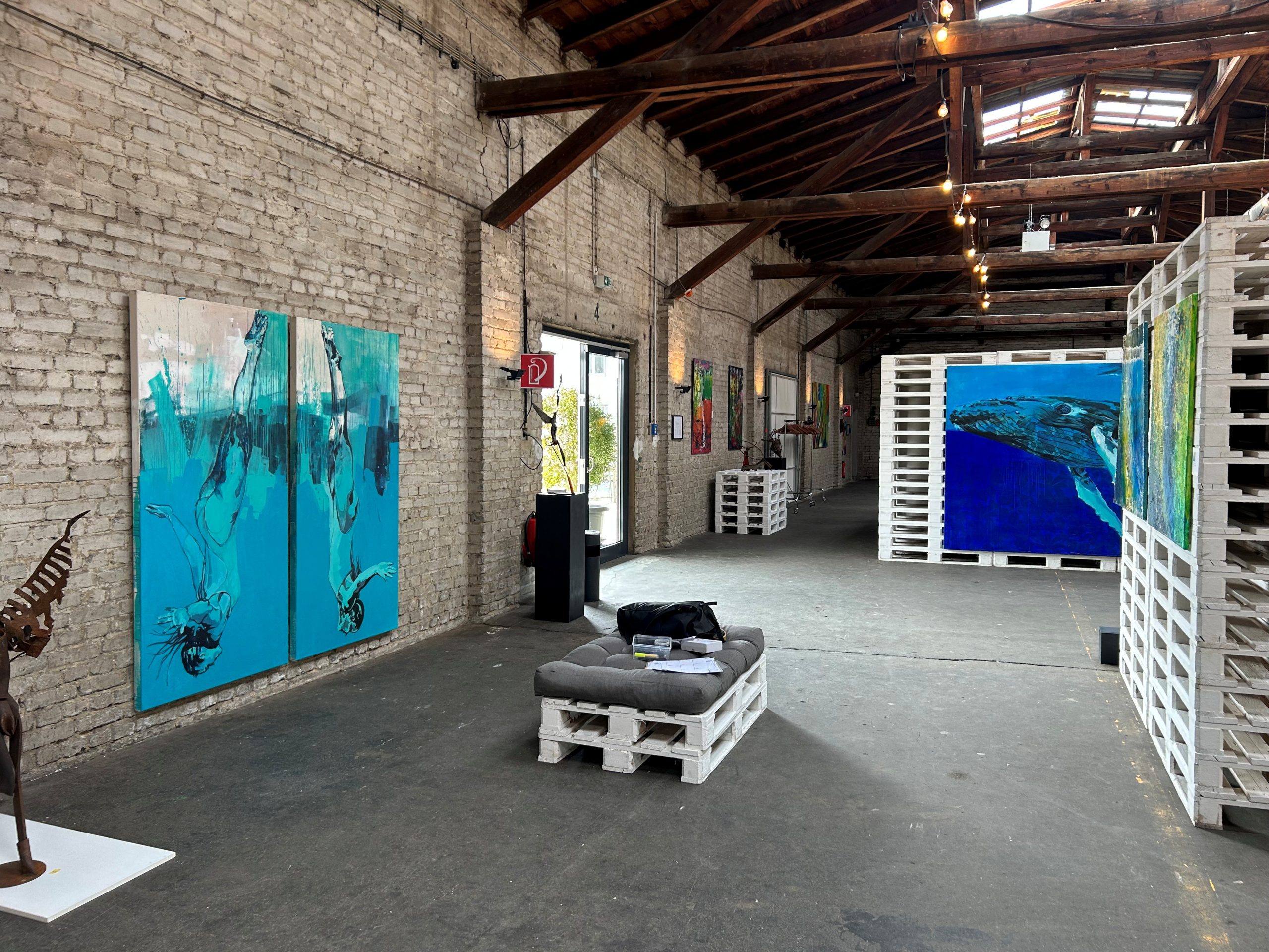 Offiziell eröffnet wurde die Ausstellung am Samstagnachmittag mit Musik von Dennis Adamski am Piano und einer Laudatio der Autorin und Kolumnistin Traudi Schlitt. Sie blickte in ihrer Rede gewohnt humorvoll, mit großer Wertschätzung und einer inspirierenden Perspektive auf die Werke und die Künstlerinnen und Künstler. Mit dem Publikum teilte sie die Freude an der Initiative zur Ausstellung, an der Vielfalt der Exponate und der einladenden Location.