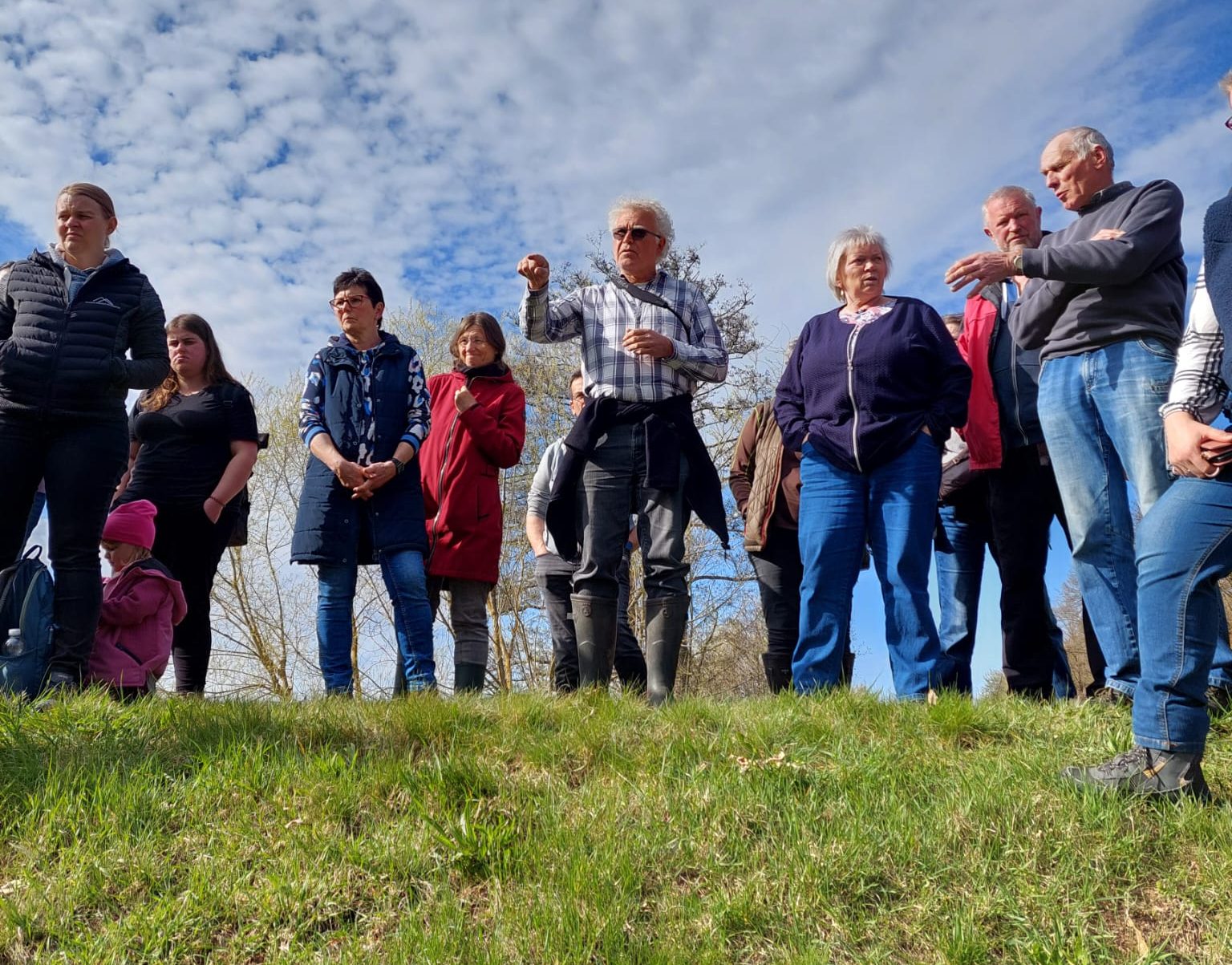 Beim anschließenden Rundgang konnten die Teilnehmenden Fraßspuren, sogenannte „Rutschen“, mehrere Dämme und eine Biberburg entdecken. Dabei wurden unterschiedliche Sichtweisen deutlich: Neben der Begeisterung über die Rückkehr eines über 400 Jahre lang verschwundenen Tieres und dessen „Ingenieurskunst zum Nulltarif“, wie Steinke betonte, äußerten einige Teilnehmende auch Sorgen hinsichtlich des Hochwasserschutzes, da sich die Biberaktivitäten in einem Renaturierungsgebiet befinden.