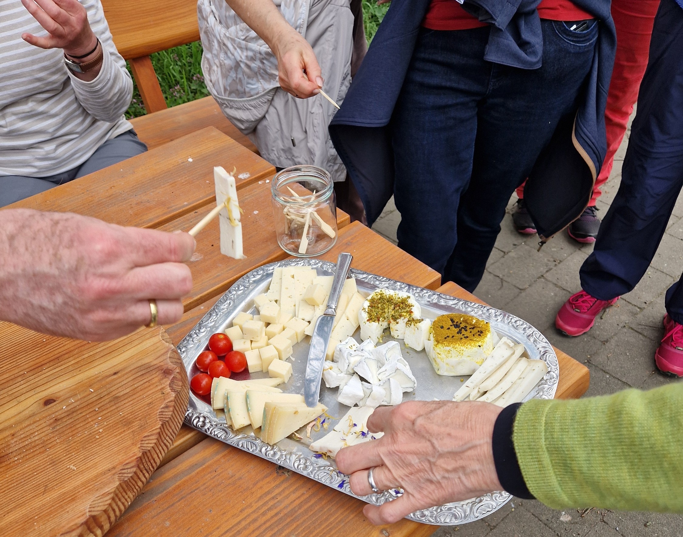 Über den idyllischen Welcker-Wiesen-Weg führte die Route zur dritten Station an der Brücke über die Ohm. Hier kamen Wanderer und Erzeuger bei Käse und Holzofenbrot ins Gespräch. Die „Käserei im Lautertal“ sowie „Haarhäuser Eier und Brot“ präsentierten ihre Produkte und standen für Fragen und Austausch bereit. Genau das macht den Reiz dieser Wanderung aus. Vorbei an Feldern und Wiesen führte der Weg schließlich zur letzten Station, an der eine kleine Schnapsverkostung den genussvollen Abschluss bildete – begleitet von Geschichten und einer entspannten, geselligen Atmosphäre.