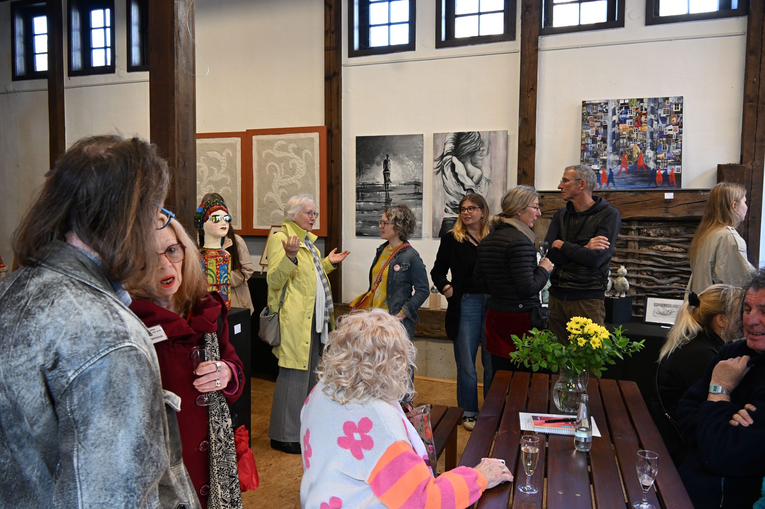 Viele Gäste wohnten der Vernissage am vergangenen Sonntag bei; begrüßt wurden sie zunächst von Jochen Weppler. Der Vorsitzende des Alsfelder Geschichts- und Museumsvereins freute sich in seiner Funktion als Hausherr der Scheune, die Werke des Kunstvereins zu präsentieren. Auch Bürgermeister Stephan Paule ließ es sich nicht nehmen, die Künstlerinnen und Künstler sowie die Gäste zu begrüßen. Der Kunstverein habe es schon immer verstanden, Kunst aus unterschiedlichen Perspektiven zu betrachten und sei stets aktuell. Ihn als Rathauschef erfülle es mit Stolz und Freude, die Werke zu sehen. Paule lobte den Mut der Kreativen, sich mit ihren Werken zu zeigen und sich damit auch der öffentlichen Meinung auszusetzen. Er dankte dem Verein dafür, den Künstlerinnen und Künstlern diese Sichtbarkeit zu ermöglichen.