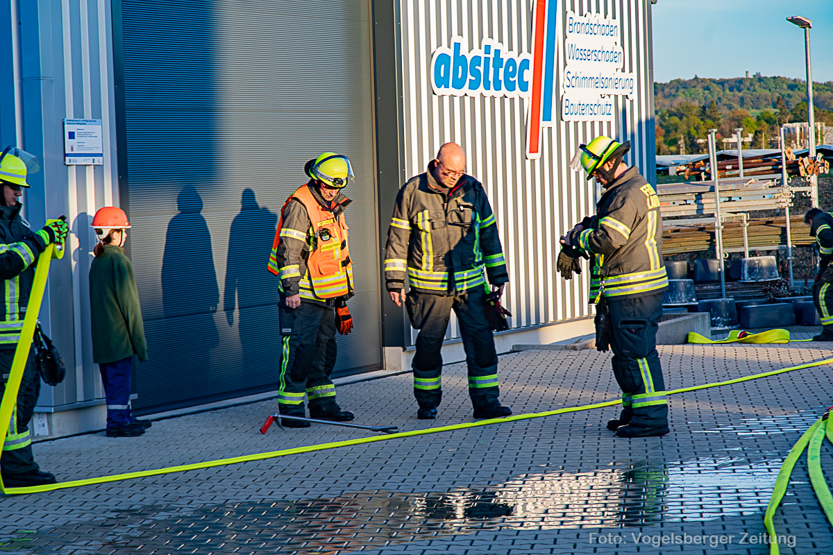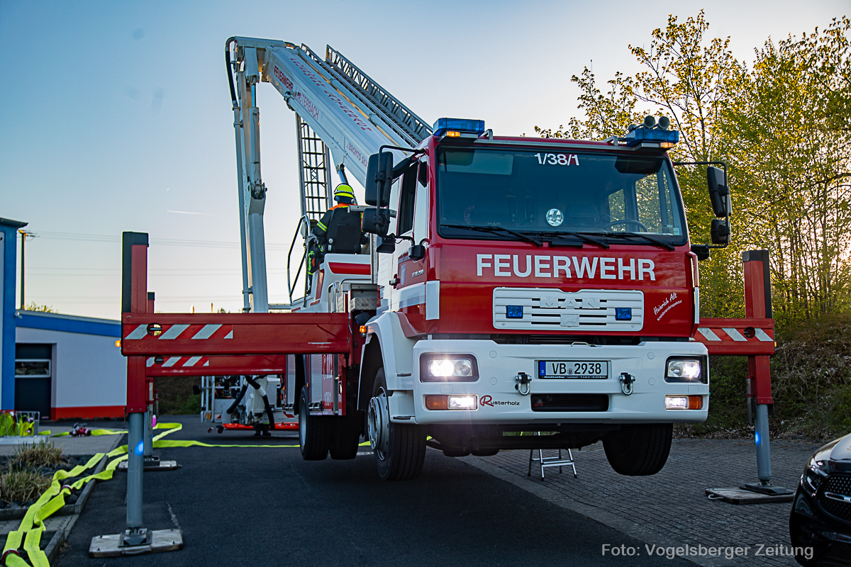 Nach der Erkundung durch den Einsatzleitwagen wurde festgestellt, dass das Gelände rundherum abgeschlossen ist. „Wir haben auch keinen Zugang zu dem Gelände, weil dort keine Brandmeldeanlage (BMA) vorhanden ist“, so Jörg Blankenburg in der Funktion als Übungsleiter. Zum Glück, so wurde in der Übung angenommen, waren im Ausstellungsraum in der Baudekoration Sachs noch Personen mit einem Generalschlüssel. Mit dem Hubrettungsfahrzeug konnten die Personen vom Dach gerettet werden.