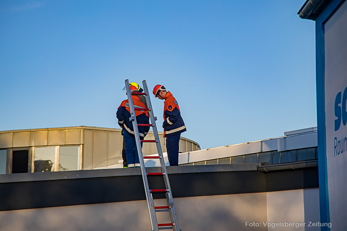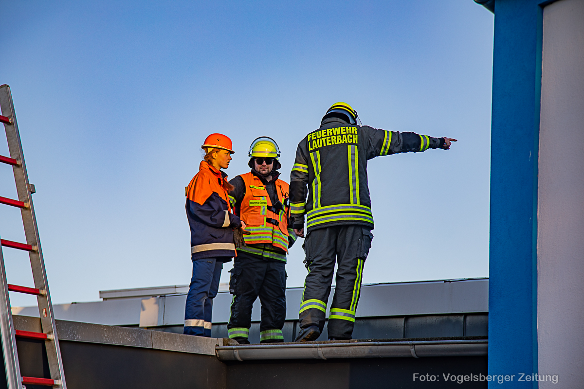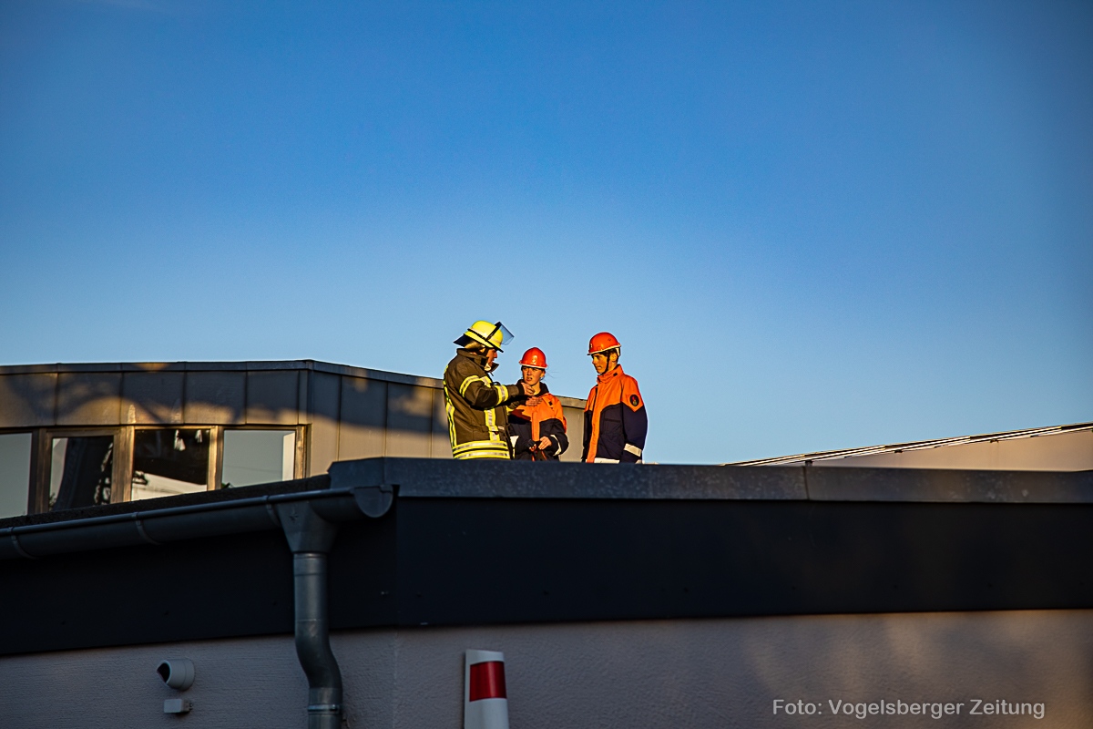 Bei der Firma Sachs, Baudekoration in Lauterbach, ist bei Reparaturarbeiten auf dem Dach durch einen technischen Defekt die Photovoltaikanlage in Brand geraten. Zwei Techniker konnten sich nicht mehr über die mitgebrachte Leiter, also über ihren Zugangsweg, retten. Daraufhin sind sie über das Dach gelaufen und haben sich an der weitesten entfernten Stelle des Brandes der Photovoltaikanlage in Sicherheit gebracht. Sofort wurde für die Feuerwehr Lauterbach, Löschzug Mitte, der Alarm ausgelöst.