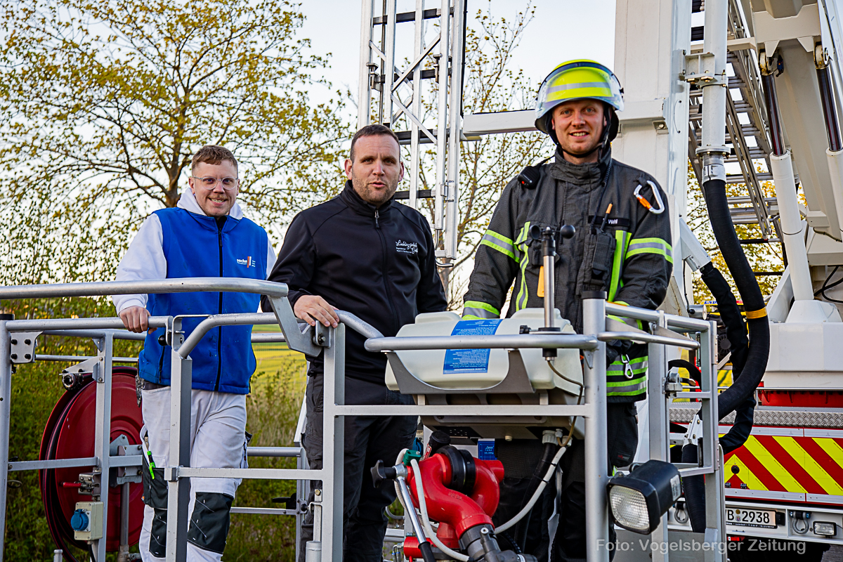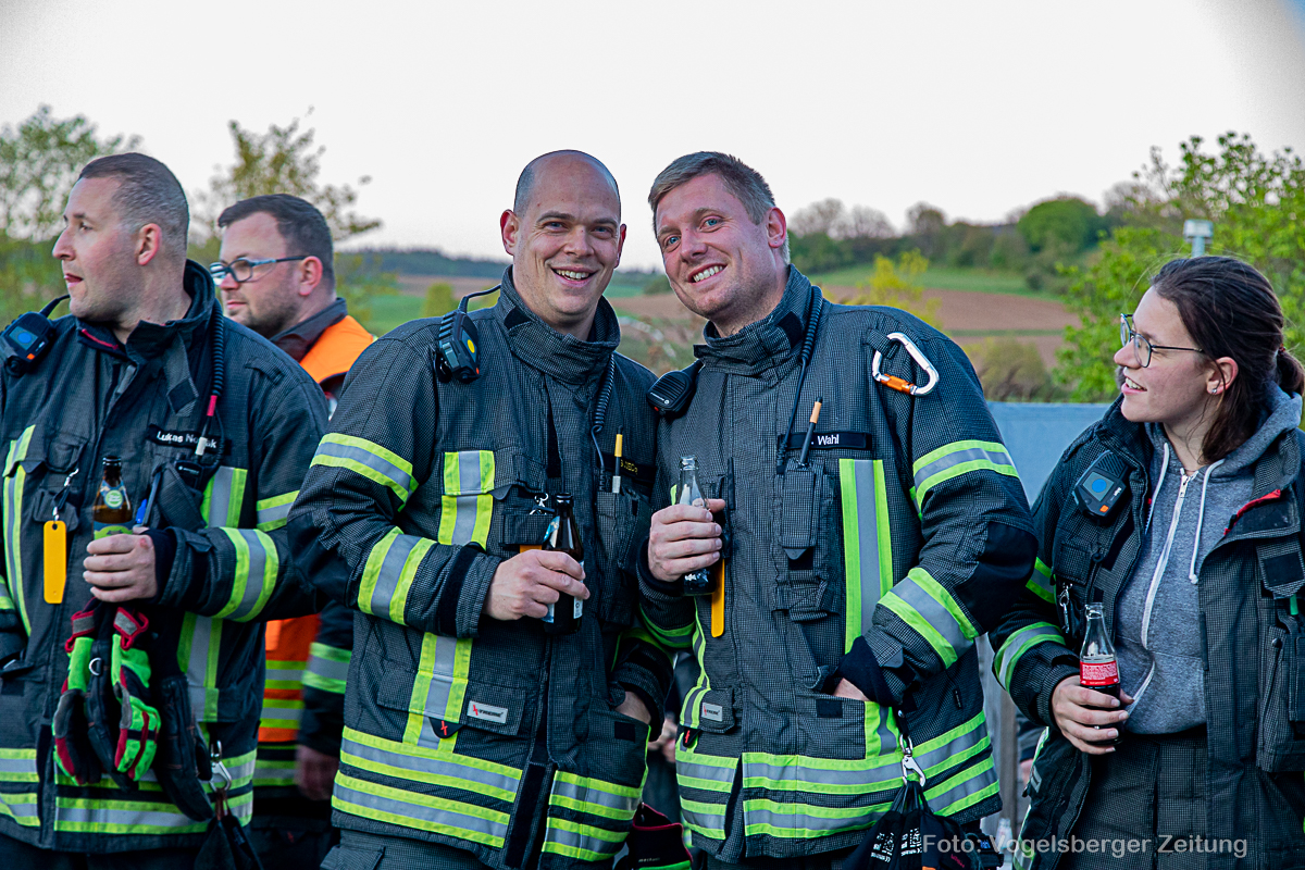 Dramatisch wurde es, als es hieß, dass noch zwei Personen im Gebäude vermisst wurden. Unter Atemschutz mussten die Personen von zwei Trupps gesucht werden. Nicht ganz einfach, denn das Gebäude war bei der Übung vernebelt, im Ernstfall dicht verraucht. „Man sah wirklich nicht die Hand vor den Augen“, so Blankenburg. Hier ist eine Wärmebildkamera optimal. Diese wurde dann eingesetzt. „Man sieht wärmere Gegenstände oder auch Personen, die dort sitzen oder liegen, das ist dann eine einfache Art, die Personen zu finden“, erklärt Jörg Blankenburg. Die Personen wurden gerettet und die eigentliche Brandbekämpfung konnte beginnen, indem man zuerst eine Riegelstellung vom oberen Gebäude, wo die Photovoltaikanlage platziert ist, aufgebaut hatte. Damit soll verhindert werden, dass sich der Brand nicht auf das Hauptgebäude ausbreitet, denn die Windrichtung war aus Richtung Osten. Somit wurde das Hauptgebäude geschützt und die Personen gerettet. „Personenrettung ist immer unser Hauptziel“, sagt Blankenburg. Es wurden danach noch Nachlöscharbeiten und Belüftungsmaßnahmen durchgeführt. „Somit ging diese Übung erfolgreich zu Ende“, zeigte sich Übungsleiter Jörg Blankenburg zufrieden.