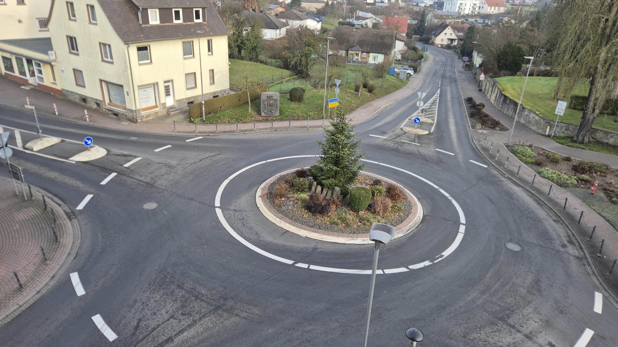 Fahrradstreifen am Berg zum Kreisverkehr