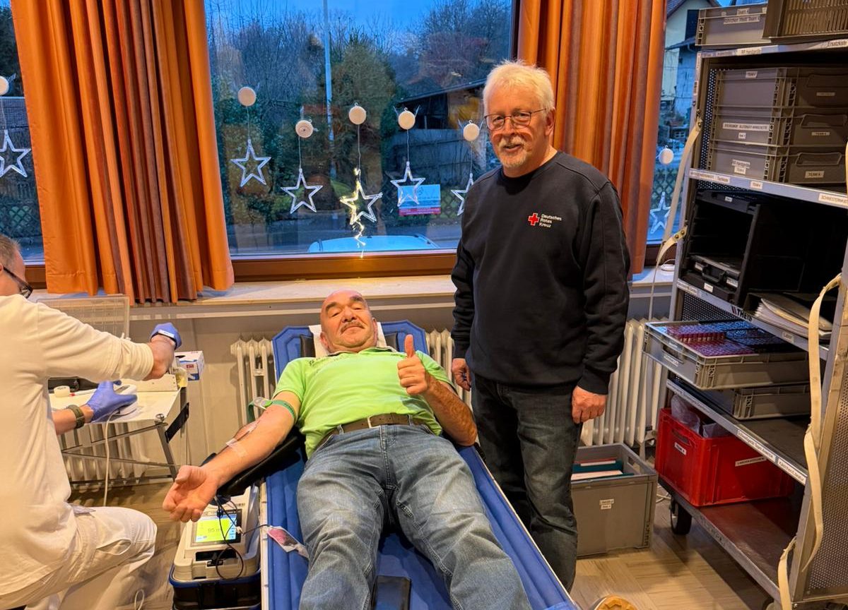 MÜCKE (ol). Kurz vor Weihnachten folgten mehr als 60 Menschen dem Aufruf des DRK Mücke zur Blutspende im Anna-Weidig-Haus in Merlau. Neben zahlreichen langjährigen Blutspenderinnen und Blutspendern wurden auch mehrere Erstspender begrüßt. Ein besonderer Höhepunkt war die 100. Blutspende eines Merlauer Bürgers, die stellvertretend für außergewöhnliches ehrenamtliches Engagement steht.