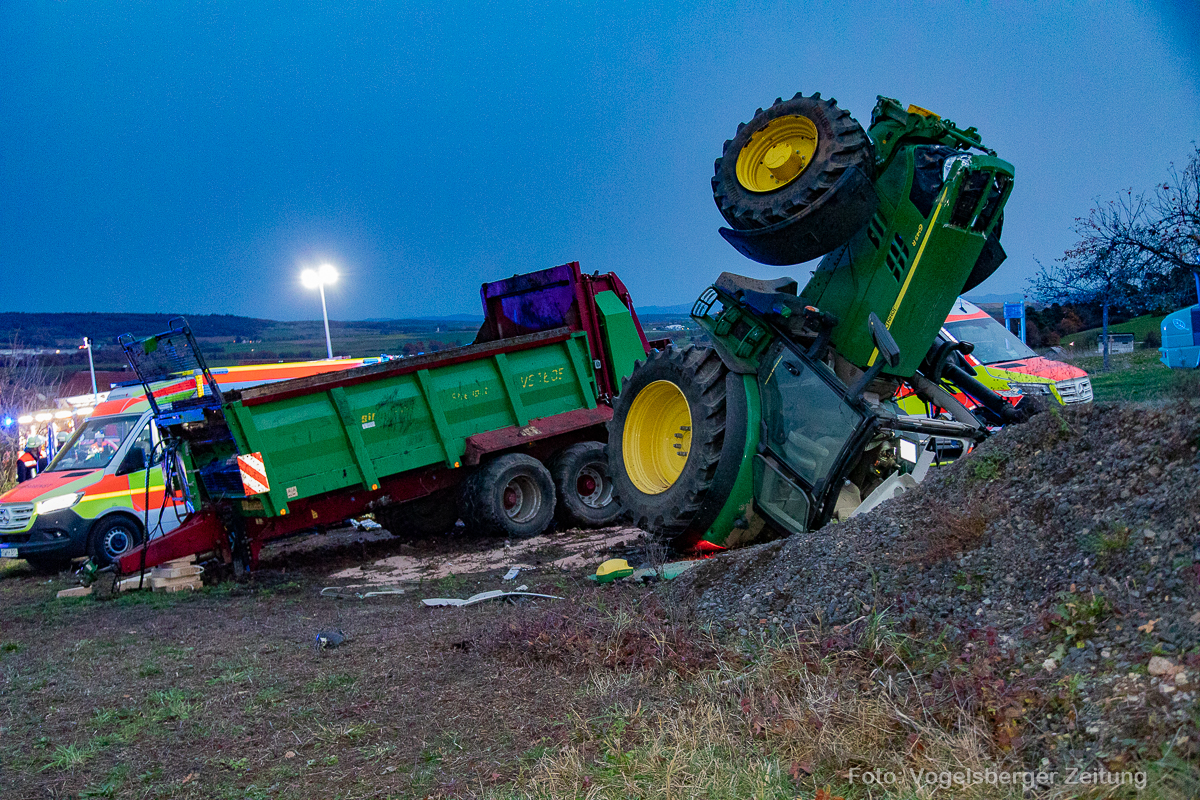 Am Freitagnachmittag kam es auf dem Eisenbacher Weg in Wartenberg-Landenhausen zu einem schweren Traktorunfall. Ein 24-jähriger Fahrer und sein 13-jähriger Mitfahrer wurden schwer verletzt und jeweils mit einem Rettungshubschrauber in ein Krankenhaus geflogen. Zahlreiche Einsatzkräfte von Feuerwehr, Rettungsdienst und Polizei waren vor Ort. Die Staatsanwaltschaft hat zur Klärung der Unfallursache einen Gutachter beauftragt.
