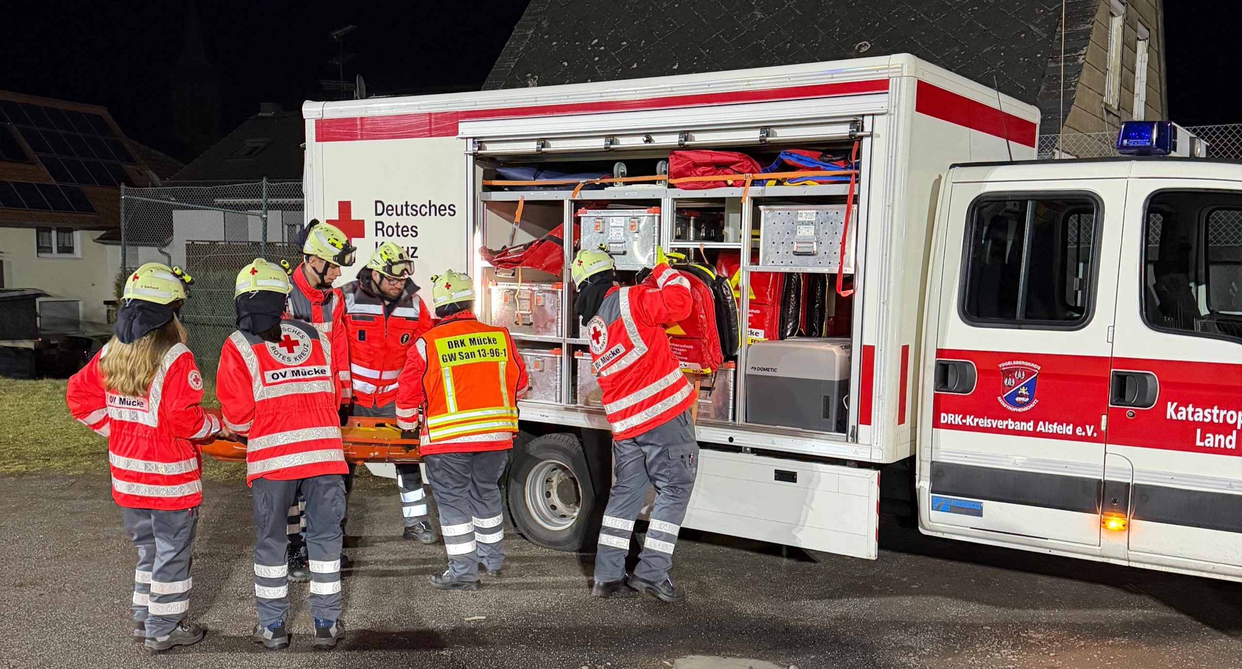 Die DRK-Bereitschaft Mücke hat bei einer Übung die Rettung aus unwegsamem Gelände trainiert. Rund 20 Einsatzkräfte probten die Versorgung und Bergung zweier verletzter Personen aus einem Graben. Neben medizinischen Maßnahmen stand vor allem die sichere und schonende Rettung im Mittelpunkt. Die Übung unterstreicht die Bedeutung regelmäßiger Trainings für komplexe Einsatzlagen.