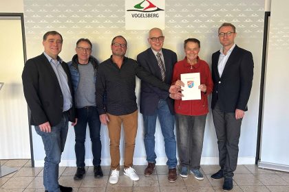 Mit rund 170.000 Euro fördert das LEADER-Programm drei Projekte in der Stadt Grebenau. Landrat Dr. Jens Mischak überreichte die Förderbescheide an Bürgermeister Lars Wicke und Vertreter der betroffenen Stadtteile. In Reimenrod wird der Dorfbrunnen saniert, in Bieben die Außenhülle des Dorfgemeinschaftshauses erneuert und in Wallersdorf das Außengelände rund um das DGH neu gestaltet.