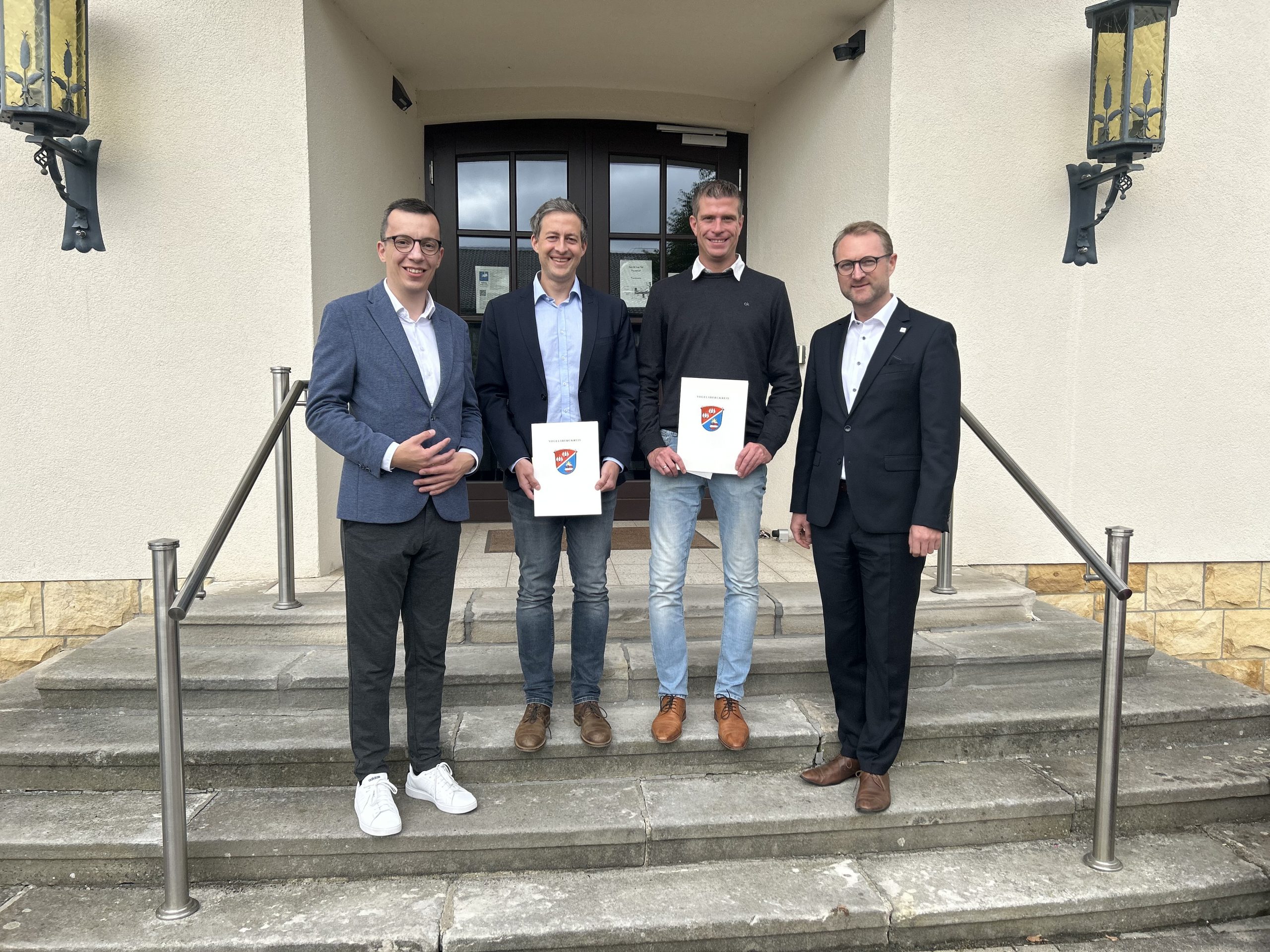 Landrat und Erster Kreisbeigeordneter würdigen 25 Dienstjahre von Stefan Jost und Tobias LippertSilbernes Jubiläum beim Vogelsbergkreis