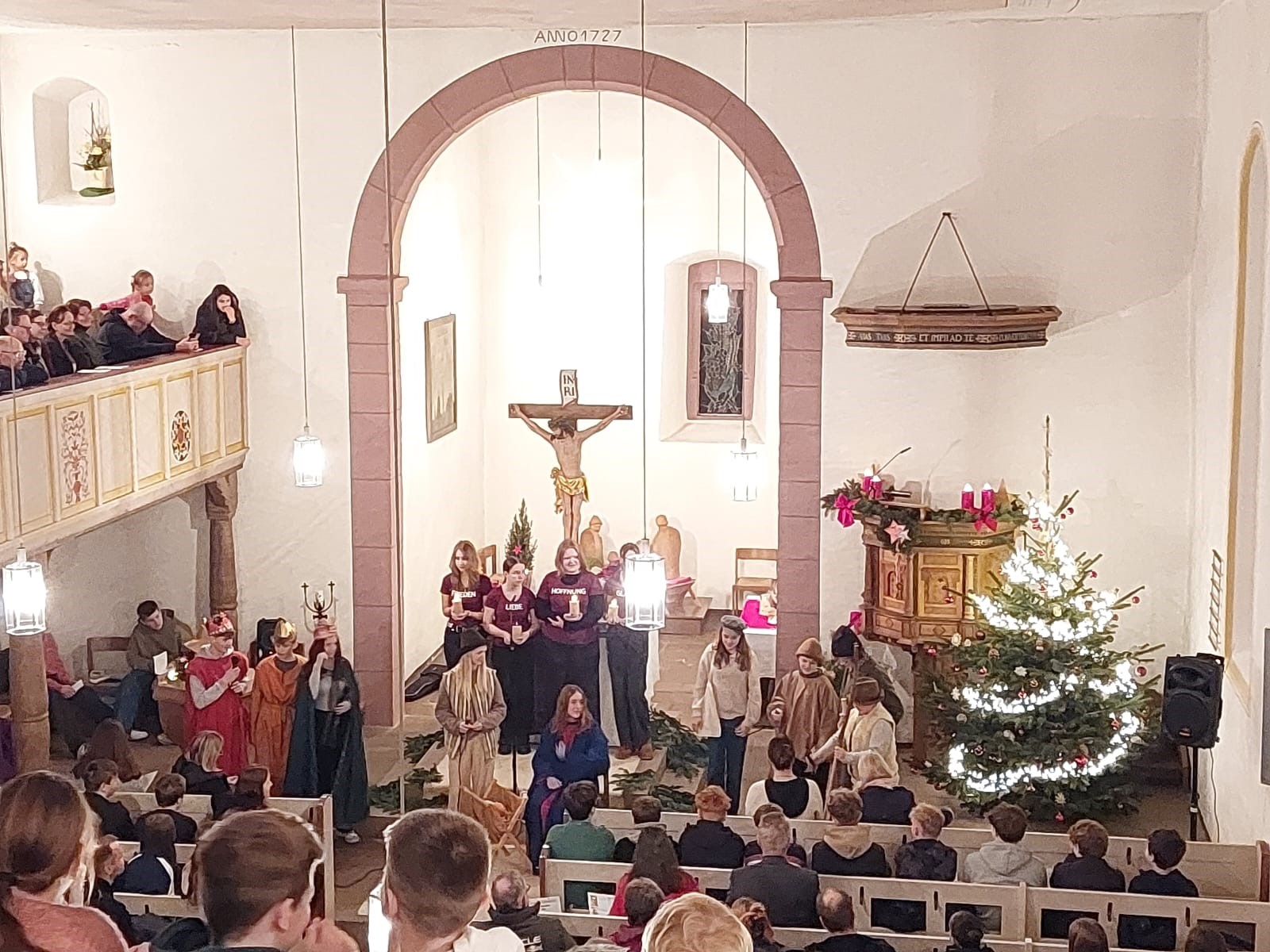 In der vierten Adventswoche gestalteten Kinder der Evangelischen Integrativen Kita Lauterbach einen besonderen Weihnachtsgottesdienst in der Stadtkirche. Mit viel Liebe zum Detail spielten sie die Geschichte „Zwei kleine Mäuse auf der Suche nach dem großen König“. Musik, Gebärdensprache und ein eindrucksvolles Bühnenbild sorgten für eine berührende Atmosphäre.