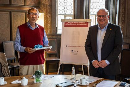 Es ist schon eine besondere Auszeichnung, die den ehemaligen ASS-Schulleiter Konrad Rüssel da zuteil wurde. Es ist aber auch ein besonderes, ehrenamtliches Engagement das dieser Auszeichnung vorangegangen ist. Für seinen unermüdlichen Einsatz rund um die Gedenkstätte Haus Speier wurde Konrad Rüssel mit der goldenen Anstecknadel und dem Wappenteller der Stadt ausgezeichnet.