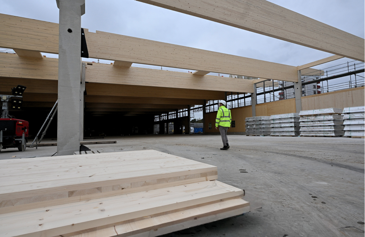 Das Brettsperrholzwerk der Pfeifer Group navigiert stabil durch wirtschaftlich herausfordernde Zeiten. Mit Investitionen in Emissionsschutz, Qualitätsmanagement und Ausbildung setzt der Standort wichtige Schritte für die Zukunft. Demnächst erfolgt die Auditierung nach dem internationalen Standard ISO 9001. Spannende Projekte wie der Neubau eines Supermarktes in Griesheim zeige, dass nachhaltiger Holzbau zunehmend zum Standard wird.