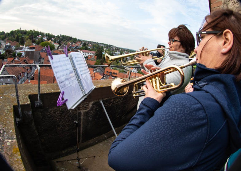 Die Alsfelderinnen und Alsfelder müssen auch in diesem Jahr auf die 400 Jahre alte Tradition des Maiblasens auf dem Turm der Walpurgiskirche nicht verzichten – wenn auch in viel kleinerer Besetzung.