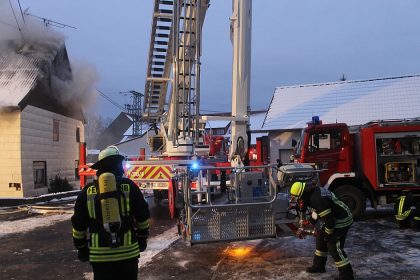 Freiwillige Feuerwehr Nieder-Ohmen bei Lkw-Unfall auf der A5 bei GemündenGefahrengut-Unfall, Schneefall und stundenlanger Einsatz für die Feuerwehr