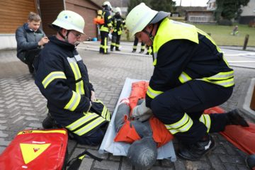 Übungsszenario brennende Reithalle in Eifa: Die Feuerwehr der Stadt Alsfeld trainierte auf dem Kastanienhof die Menschenrettung und die Brandbekämpfung.