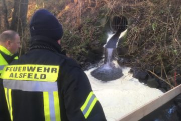 Das Ausmaß der Umweltverschmutzung auf dem Alsfelder Erlenteich ist größer als vermutet: 5.000 Liter Altöl sollen nicht nur den Krebsbach, sondern auch den Erlenteich und andere Gewässer verschmutzt haben. Die Feuerwehr ist seit 15 Stunden im Großeinsatz.