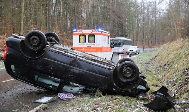 HERBSTEIN/ULRICHSTEIN (ol). Am heutigen Morgen hat sich ein schwerer Verkehrsunfall zwischen dem Rixfelder-Kreuz und Hopfmannsfeld ereignet. Bein einem weiteren Unfall bei Ulrichstein kam es zu einem Zusammenprall zwischen einem Pkw und einem Pferd. Eine 21-jährige Autofahrerin befuhr die Landesstraße L3139 vom Rixfelder-Kreuz kommend in Richtung Hopfmannsfeld. Aus ungeklärter Ursache kam sie mit ihrem Pkw nach rechts von der Fahrbahn ab und überschlug sich.