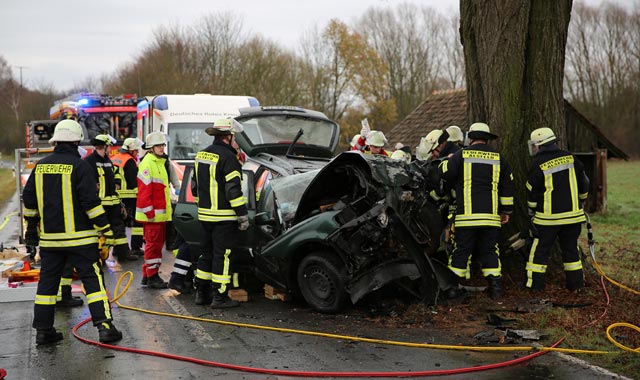 Schwerer Unfall am Freitagnachmittag zwischen Angenrod und BillertshausenFrontal gegen einen Baum und eingeklemmt