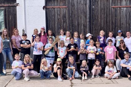 Auf dem Feldgartenhof der Familie Weitzel in Deckenbach erlebten rund 30 Kinder eine besondere Kinderkirchenzeit unter dem Motto „Unser tägliches Brot gib uns heute“. Die Evangelischen Kirchengemeinden im Nachbarschaftsraum Homberger Land kombinierten dabei das Erntedankfest mit praktischem Brotbacken, Spielen und Geschichten. Mit Begeisterung lernten die Kinder, wie aus Korn Brot wird, und feierten gemeinsam ein fröhliches Kinderabendmahl.