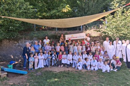 Zum Weltkindertag am 19. September verwandelte sich die evangelische Kindertagesstätte Romrod in ein Kinderlabor. Mit dem mobilen Mitmach-Angebot des Chemikums Marburg erlebten die Kinder einen Vormittag voller Experimente und staunten über bunte Chromatographie-Blüten, dampfendes Trockeneis, wackelige Alginat-Würmer und geheimnisvolle Nicht-Newtonsche Fluide. Ausgestattet mit Laborkitteln und Schutzbrillen wurden sie selbst zu kleinen Wissenschaftlern und nahmen unvergessliche Eindrücke mit nach Hause.